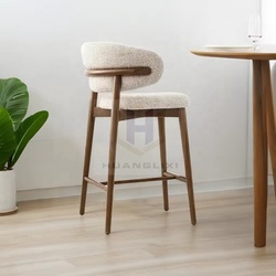 Nordic Modern Massivholz rahmen Barhocker mit Leinen Stoff gebogene Rückenlehne für Home Bar oder Wohnzimmer für Hotels